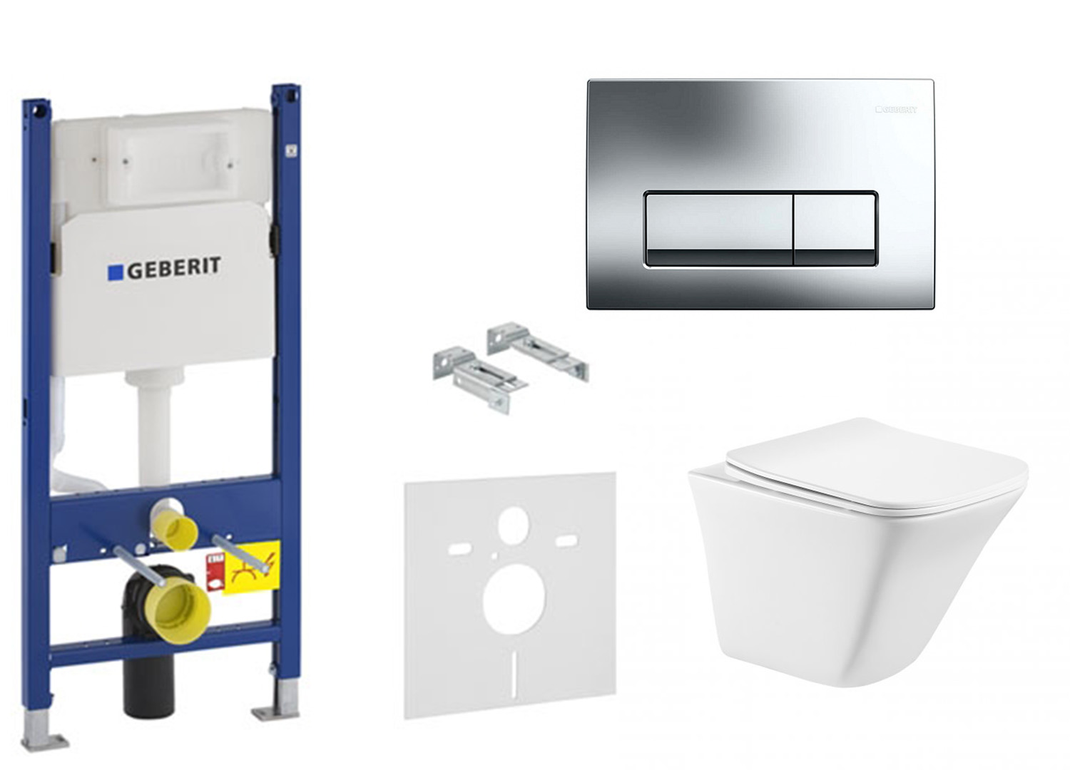 Унитаз подвесной BelBagno, с инсталляцией Geberit Duofix Delta и кнопкой смыва Geberit Delta 52